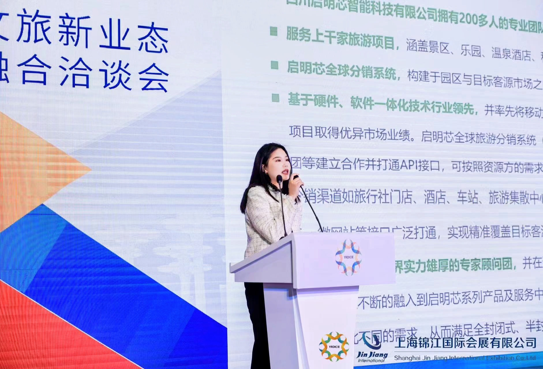 “双向奔赴,共创一流”,四川启明芯智能科技有限公司受邀参加上海“第四届长三角国际文化产业博览会”,并就“文旅新业态融合”做出相关智慧旅游建设主旨分享。