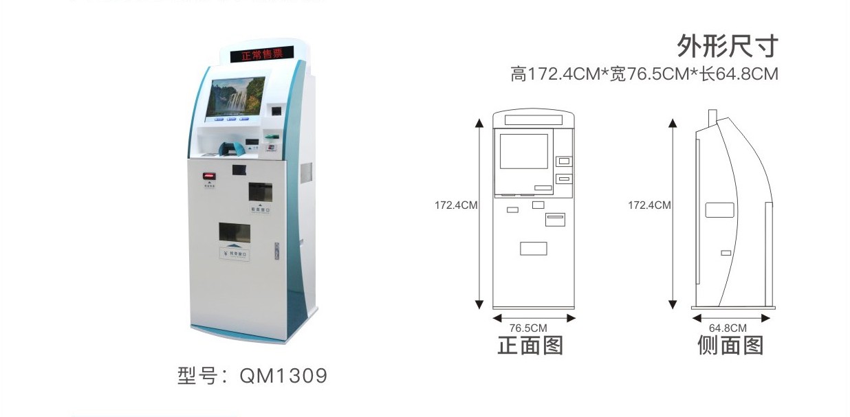 QM1309自助充值机/售取票机,可用于不同文旅业态使用,满足游客自助购票、兑换取票及园区二次消费自助充值、查询、退款等操作。箱体采用不锈钢材质,流线型外观设计,兼顾实用与美观; 采用触摸式操作,最快只需点击一次即可完成购票选择; 采用矢量图形技术,界面表现力强; 采用前后开门设计,方便管理和维修; 操作面板拆卸方便,大部分模块可用导轨拖出,维护方便; 各种箱体轻便可靠,配备电子ID和多重保护,兼顾安全性和易用性。