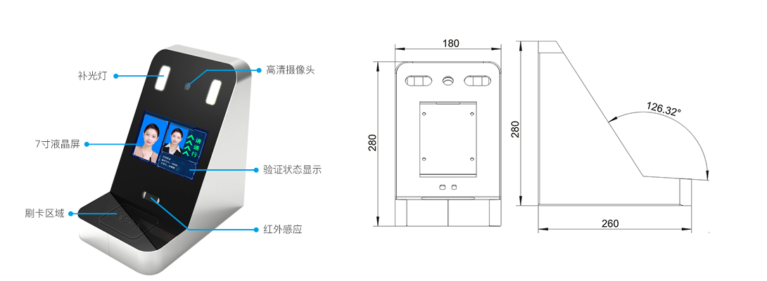 ★ 验证方式:支持刷二代证,提取身份证照片与现场抓拍照片进行人脸比对;也支持纯人脸、人脸+刷卡比对方式;